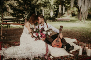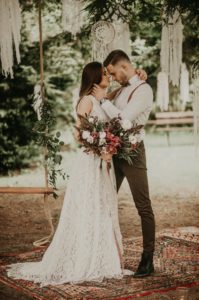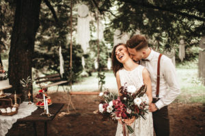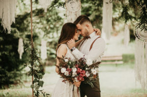 Willa Tadeusz Uczucie całkowitego połączenia z naturą. Delikatne pocałunki, uściski, ziarenka granatu i burgundowy Cymbidium – król kwiatów i tego projektu